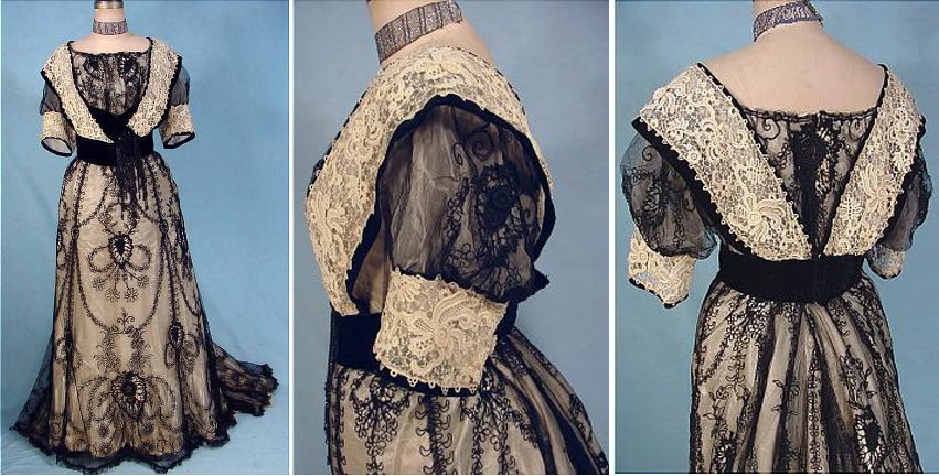 After perusing the website AntiqueDress.com for wedding dresses from yesteryear, I just had to explore the site for the great examples found there of period fashion from the Edwardian era! Be sure to visit the Antique & Vintage Dress Gallery for its excellent collection of fashion from Regency to post-Edwardian.