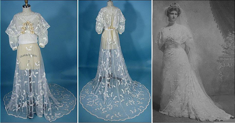 For someone who loves lace, these dresses are an absolute treat! I find it fascinating to see how the fashion has changed over the years and these dresses from AntiqueDress.com provide a lovely overview of wedding gowns from 1837 up until the 1960's and a pink Albert Capraro Couture designer gown from 1981, likely inspired by Princess Diana's famous wedding dress. Although I enjoy seeing the style of each era, the Edwardian dresses remain my hands-down favourite! Here's yet another gallery of Weddings from the Past. I've included some detailed pictures of some of the gowns but there are more dresses and images to be discovered at the website!1837